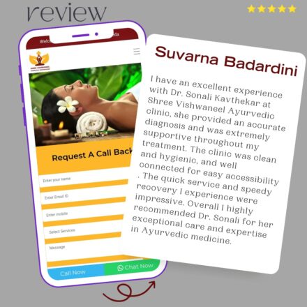 Shree Vishwaneel Ayurvedic Clinic & Panchakarma Center, led by Dr. Sonali Kavathekar, is located just a few steps from Juinagar Station, Navi Mumbai, making it easily accessible for patients. Established in December 2010, our clinic has successfully treated and benefitted more than 5000 patients from across India with authentic Ayurvedic care.